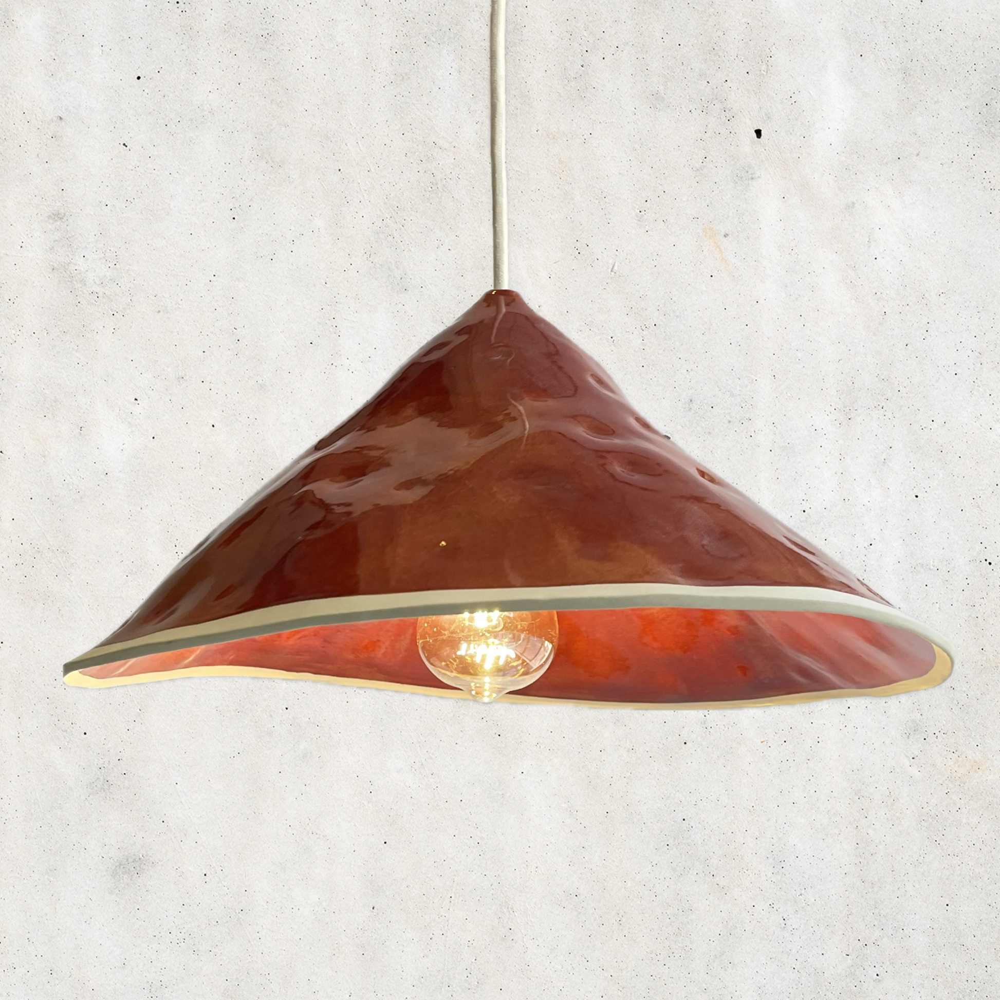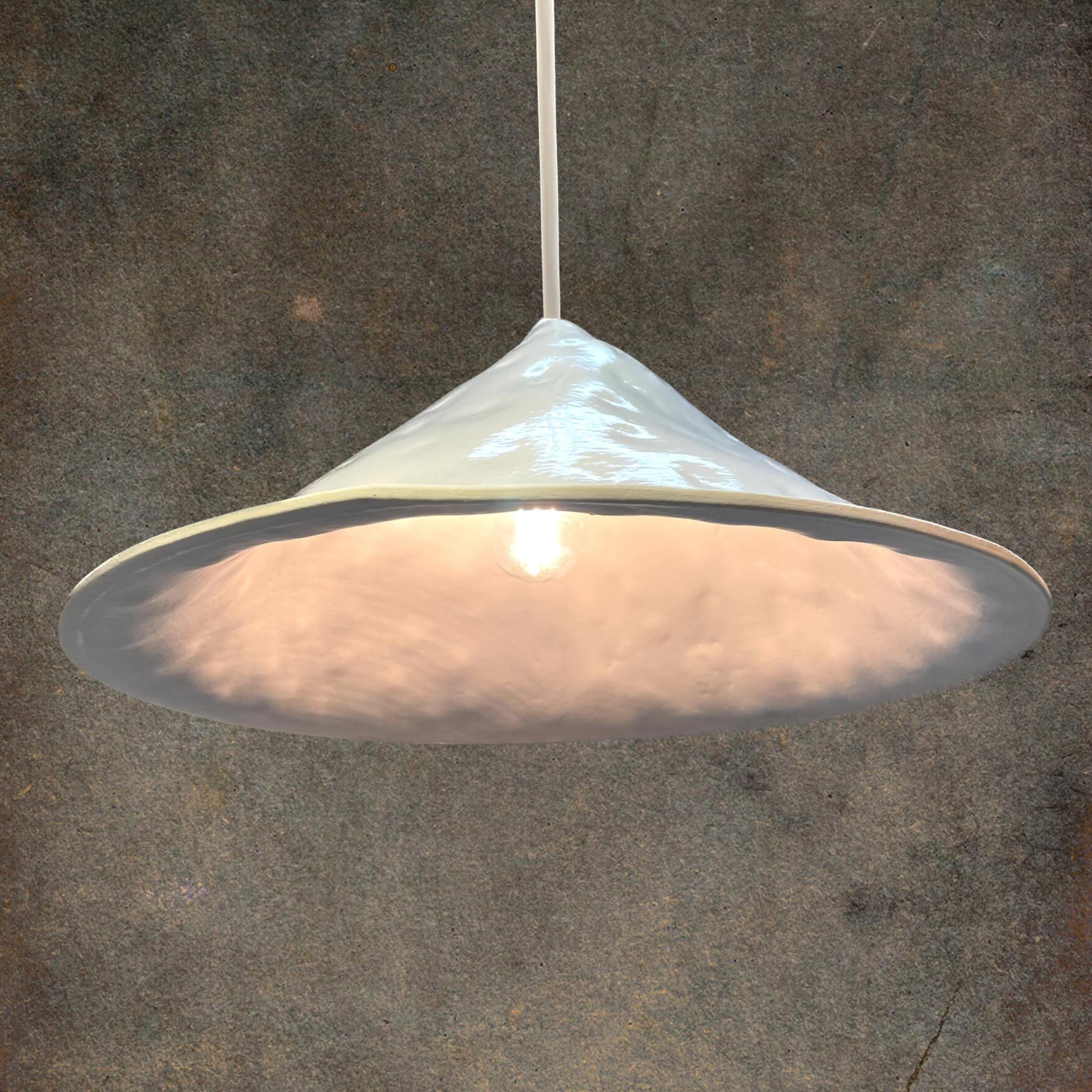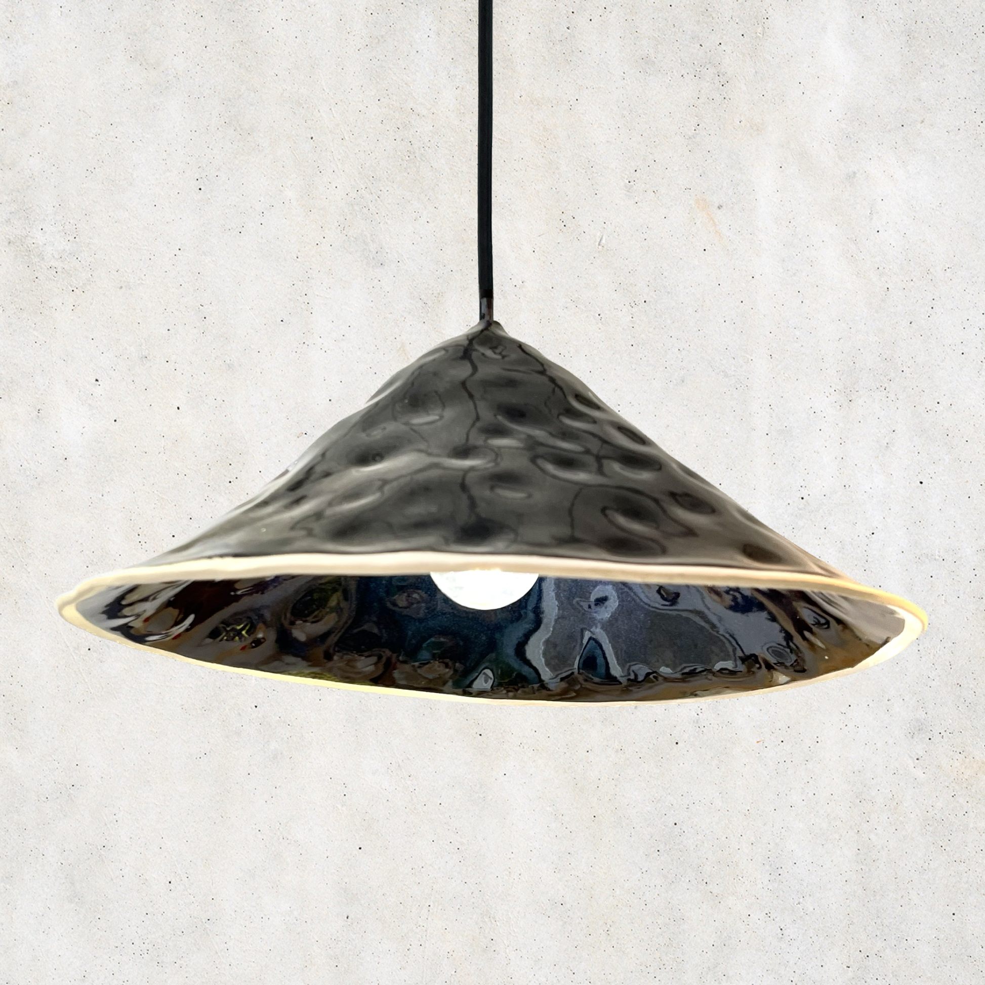 Each Dimple is crafted and shaped individually. They are available in a range of textures and colours. We use a variety of clays and finished to give you the best option for your light's environment. A darker colour looks best in a lighter environment and vice versa.